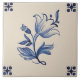 Este belo azulejo tem um fundo de marfim e uma imagem azul de impressão floral azul.