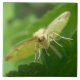 Este incrível azulejo apresenta uma fotografia macro detalhada de uma pequena mariposa de cor amarela com marcas marrons gravadas em uma folha hollyhock. Na fotografia podem ver a parte inferior das asas das mariposas, o pelo no topo das suas costas, os seus olhos abaulados e as suas pernas castanhas e brancas. Você também pode ver que ele desfez seu tubo de alimentação para testar se a folha hollyhock é ou não comida.