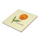 Flor de laranja com gotas de chuva nas pétalas. Um título "Calendário" está incluído no canto inferior direito
