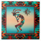 Brilhe a sua casa com este Azulejo único de "um tipo" do sudoeste de Kokopelli! Apresenta um Kokopelli Sudoeste Tocando Flute e Dançando Sob o Sol em um Fundo Turquesa e Laranja Sunset.. Cercado por uma Fronteira Sudoeste em Turquesa, Laranja e Preto! Esta é uma Design de Arte Original do Artista Kerry Miller.