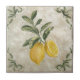 Lindos limões-limão em um azulejo cerâmico elegante e rústico. Um ramo único europeu gravado de folhas verdes de cheio com um limão inteiro e uma metade de limão suculenta num fundo texturizado de cinza neutro. Este é um excelente de sotaque a qualquer cozinha italiana ou francesa inspirada na Countryside! Decoração de limão, limões franceses do campo, azulejo cerâmico com limões, azulejo de cozinha com limões.