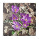 Se você está esperando os primeiros sinais de primavera depois de um longo inverno frio, então você vai adorar esta impressionante foto roxa de croco. Com pétalas roxas vívidas e estames laranja, estes belos crocos florescem entre as folhas caídas do chão da floresta criando um design floral primavera colorido.