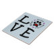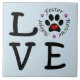 Este azulejo cerâmico da foto mostra seu amor para animais e salvamento do animal. A palavra "amor" é soletrada com a letra O representada por um impressão da pata com um interior vermelho do coração cercado pelas palavras adota, promove e salva separado com impressões roxos da pata. Este é um grande presente para o senhor mesmo ou todo o amante dos animais. Isto podia igualmente ser usado pelos abrigos animais como um artigo do raffle, em um prêmio silencioso do fundraiser ou do funcionamento 5K do leilão.