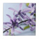 Folhas de flores roxas ramificam uma foto fechada neste azulejo de cerâmica. Use-o como um trivet ou adicione um quadro e use-o como decor de parede.