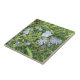 Um Azulejo cerâmico com uma fotografia de flores silvestres.