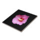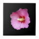 Fechar uma flor rosa de Hibiscus com um pistil totalmente desenvolvido sobre fundo preto