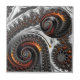 Impressionante fractal de Mandelbrot, prata e laranja, com espirais e uma esfera refletindo a imagem