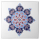 Azulejo cerâmico decorativo com medalhão de azul escuro, azul claro e vermelho sobre fundo branco. Estas serão excelentes para o esfregão das costas da cozinha, banheiro ou lareira. Design do azulejo de Oregon Fay Jones Day
