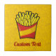 Ilustração de desenho animado de um pequeno pacote de batatas fritas. Imagem do contorno da comida de lixo ícones de fundo amarelo. Custom Text.