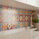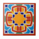 Ilumine o seu espaço com este azulejo cerâmico colorido de estrela solar marroquina em azul vibrante, amarelo e laranja. Perfeito para backsplash de cozinha, arte de parede ou decoração mediterrânea.