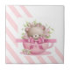 Azulejo cerâmico, risca rosa e branca