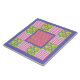 Um Azulejo cerâmico bonito, decorado com um padrão falso de primatas cor-de-rosa profundo, azuis violeta e amarelas sobre fundo verde-folha, com gingham e bolinhas; cor-de-rosa e branco profundos, da coleção "Primroses" Posh & Painterly.
