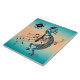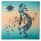 Brilhe a sua casa com este Azulejo único de "um tipo" do sudoeste de Kokopelli! Apresenta uma Turquesa do Sudoeste, Branco, Dourado e Rust Kokopelli tocando flauta e dançando sob o sol num fundo de turquesa e sunset laranja... cercado por notas musicais! Este é um Design de Arte Original "Um dos Tipos" do Artista Kerry Miller.