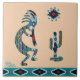 Brilhe sua casa com este Azulejo de cerâmica do sudoeste de Kokopelli único "Um dos tipos"! Ele apresenta um Turquesa no sudoeste de Kokopelli tocando a flauta dançando em volta de um cacto sob o sol em um fundo de bronzeamento...com uma borda inferior em turquesa, Dourada, ferrugem e branca! Esta é uma Design de Arte Original do Artista Kerry Miller.