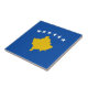 Este design consiste na bandeira kosovar remodelada inteligente para caber a superfície quadrada do azulejo. Um artigo decorativo e útil que fizesse um presente perfeito para aqueles que como para recordar Kosovo.