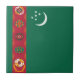Este design consiste na bandeira turquemena remodelada inteligente para caber a superfície quadrada do azulejo. Um artigo decorativo e útil que fizesse um presente perfeito para aqueles que como para recordar Turkmenistan.