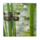 Esta fotografia bonita da libélula foi tomada nos jardins botânicos em Grand Junction, Colorado. A libélula está descansando em uma grande lâmina de grama com suas asas estendidas. Seu corpo é azul e suas asas translúcidas são marrom escuro na base e branco na ponta. Cada asa igualmente tem uma listra preta pequena na borda superior para a ponta. Há diversas lâminas da grama verde atrás da libélula e o fundo da fotografia é cheio da água sparkling que reflete o sol.