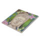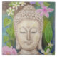 As flores bonito em um Buddha enfrentam em um azulejo.