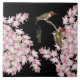 A colagem lindo de belas artes botânicas do vintage de pássaros Rufous do colibri e de flores cor-de-rosa e brancas da orquídea de Linawianum do Dendrobium está neste azulejo floral dos colibris. A imagem é dominio público devido aos direitos reservados expirados.