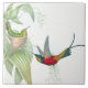 As belas artes botânicas do vintage lindo de pássaros vermelhos de cauda longa tropicais do colibri, de seu ninho e de flores estão neste azulejo. A imagem é dominio público devido aos direitos reservados expirados