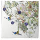 A colagem lindo de belas artes botânicas da aguarela do vintage de Nouveau da arte do Hollyhock e da madressilva floresce por Mucha, com os pássaros de voo azuis bonitos do colibri de Spatuletail, está neste azulejo floral dos colibris. A imagem é dominio público devido aos direitos reservados expirados.