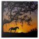 Um cavalo correndo ao pôr do sol com um lindo carvalho. Uma peça de decoração excepcional para o seu nativo americano, sudoeste, cowboy ou rancho para sua casa ou um presente de aquecimento da casa de excelente também! Um amante de cavalos também adoraria este azulejo. Atire na costa central da Califórnia em San Luis Obispo.