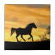 Uma bela manhã iluminada pelo sol com um bonito cavalo correndo silenciado pela luz. Um belo azulejo de arte do campo de cavalos. Faz um presente excelente para o amante de cavalos ou para a casa do campo.
