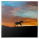 Um belo nascer do sol do sudoeste com um cavalo silenciado enquanto ele testa. Uma bela e colorida peça de decoração de casa de cavalo e ela parece estar enquadrada no excelente também!