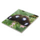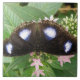 Esta azulejo incrível mostra uma fotografia de uma bela borboleta tropical. Esta espécie é preta, principalmente, com belas manchas azuis brilhantes e iridescentes em cada asa. A fotografia foi tirada usando macrofotografia para um resultado incrivelmente detalhado.