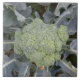 Este incrível azulejo apresenta uma fotografia detalhada de uma cabeça de brócolis crescendo em um jardim. Os floretes verdes fortemente recheados estão rodeados pelas grandes folhas exteriores do vegetal.