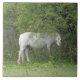 Esta azulejo incrível mostra uma bela fotografia de um lindo cavalo branco parado debaixo de uma árvore parecendo um pouco tímido.