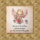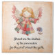 A costura de um azulejo cerâmico temático com uma doce ilustração de anjos vestidos com um tom colorido de retalhos e sotaque floral. Pode ser editado para personalizar com seu próprio texto.