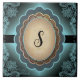 Personalize este único Azulejo de cerâmica "Um tipo" de turquesa e monograma preto! Possui um Lace de Turquesa Antiquado Elegante e um Oval Decorativo de Tom em uma Turquesa Misturada e Fundo Negro! Design de Arte Original por Kerry Miller.