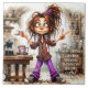 Esta Senhora do Café Quirky traz seu humor sarcástico ou apenas um "humor" a este azulejo cerâmico decorativo e colorido, e sua expressão de personagem diz tudo: "Você já está esperando milagres antes que eu tenha meu café... Boa Sorte."