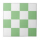 Este azulejo cerâmico moderno apresenta um padrão de tabuleiro de xadrez em verde-sábio e branco. As cores são facilmente personalizadas clicando no botão Editar design.