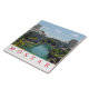 Uma bela fotografia da ponte antiga na cidade de Mostar, na Bósnia e Herzegovina, impressa num azulejo cerâmico de souvenir.