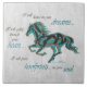 Ilumine a sua casa com este único Azulejo Inspiracional de decoração de cavalos "Um tipo"! Ele apresenta uma Silhueta Cavalo Galopante em Turquesa, Preta e Dourada e as palavras... "Eu dançarei em seus sonhos" ~ Eu irei galopar pelo seu coração" ~ Eu vou plantar capas na sua alma"! Este é um Design de Arte Gráfica Original criado pelo Artista Kerry Miller.