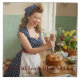 Ilumine sua casa com este encantador azulejo de cerâmica personalizado para a Páscoa no estilo Pin-Up! Parte de nossa exclusiva Coleção Páscoa Retro, este design apresenta uma adorável garota ao estilo dos anos 50 decorando um tradicional bolo de Páscoa em uma cozinha vintage ensolarada. É uma peça decorativa perfeita para o seu interior de primavera ou um presente caloroso.
