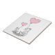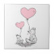 Azulejo cerâmico com raposa e mãe com balões em forma de coração.