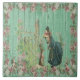 O antigo Azulejo de cerâmica moído com rosas infantis, coelhos e brincalhões, todos colocados contra um fundo de madeira. Este azulejo personalizado faz o presente perfeito para pessoas que desfrutam de itens antigos.