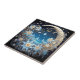 Flores azuis e brancas e a lua. Esse azulejo cerâmico é ideal para uma cintura invertida, uma arte de parede ou como uma peça de arte isolada.