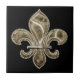 Azulejo de cerâmica Dourado Fleur de Lis Square, 4,25" - preto
