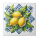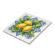 Este azulejo de cerâmica é mostrado com uma impressão de arte de azulejo de limão vibrante.