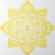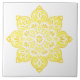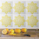Esta gravata amarela ensolarada é a coisa para a sua cozinha. O design é um medalhão amarelo. O fundo é branco. Do Azulejo de Oregon Fay Jones Day.