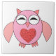 Este incrível azulejo apresenta um desenho fofo de uma coruja rosa com olhos sonolentos, um pequeno bico e pequenos pés bonitos. A coruja tem um grande coração de amor vermelho no meio da barriga e asas bem abertas prontas para dar um grande abraço a alguém.