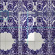 Meu mural original, com azulejo cerâmico protegido por direitos autorais, em azul de cobalto e branco cria um incrível padrão de tecido.