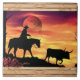 Brilhe a sua casa com este Azulejo de cerâmica único "Um dos bons" e Longhorn Steer! Ela apresenta um cowboy cavalgando um cavalo, pastorando um boi longo durante um lindo pôr de sol laranja... com bordas de madeira! Design de Arte Original por Kerry Miller.