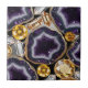 Este azulejo apresenta um padrão vibrante e detalhado de nós de ametista e cristais límpidos e ouros. O design capta a beleza natural e detalhes complexos dessas pedras de gema, fazer-o uma escolha única e atraente para a decoração domiciliar. Perfeito para adicionar um toque de elegância e encanto natural a qualquer espaço.