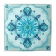 Azulejo de arte fractal em azul e turquesa com padrão geométrico de estrela floral. Excelente como decoração de parede para cozinha ou banheiro!