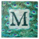 Peacock Bird Feather Teal Turquoise Vintage Monograma Vitoriano Azulejo Decorativo Inicial Personalizado
